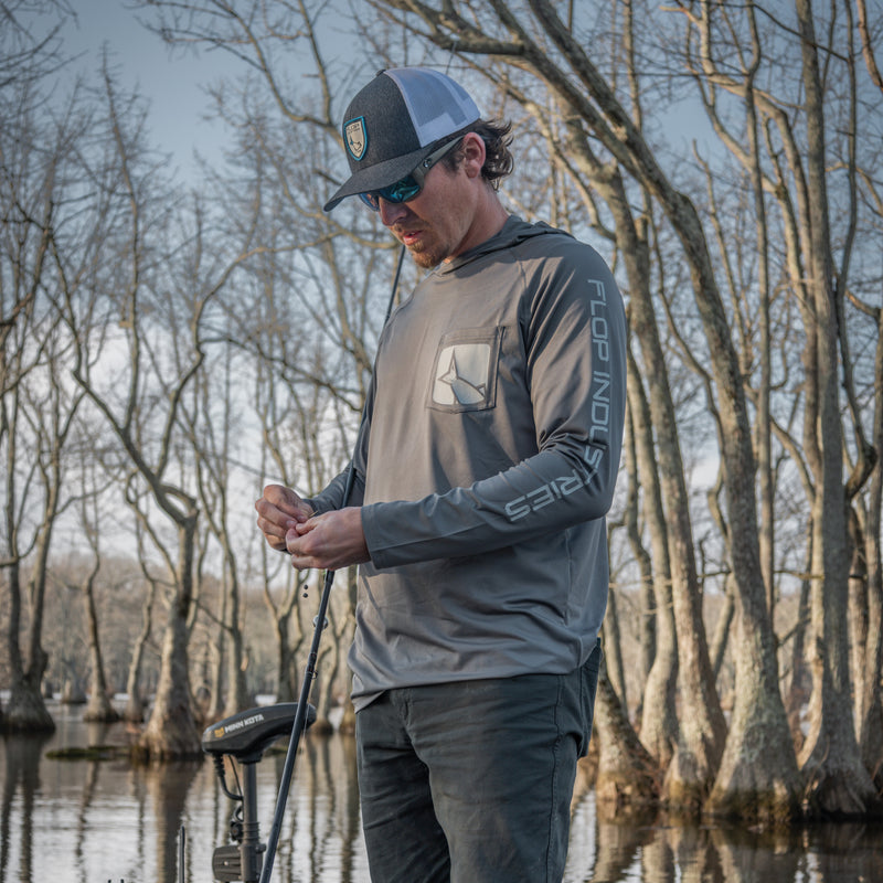 With reinforced stitching, durable high-quality materials, and a front pocket accented with a small woven Flop tag for a clean, refined look, the Performance Fishing Hoodie is built to withstand rugged outdoor conditions. It’s available in a variety of colors and sizes, making it a versatile choice for any angler.