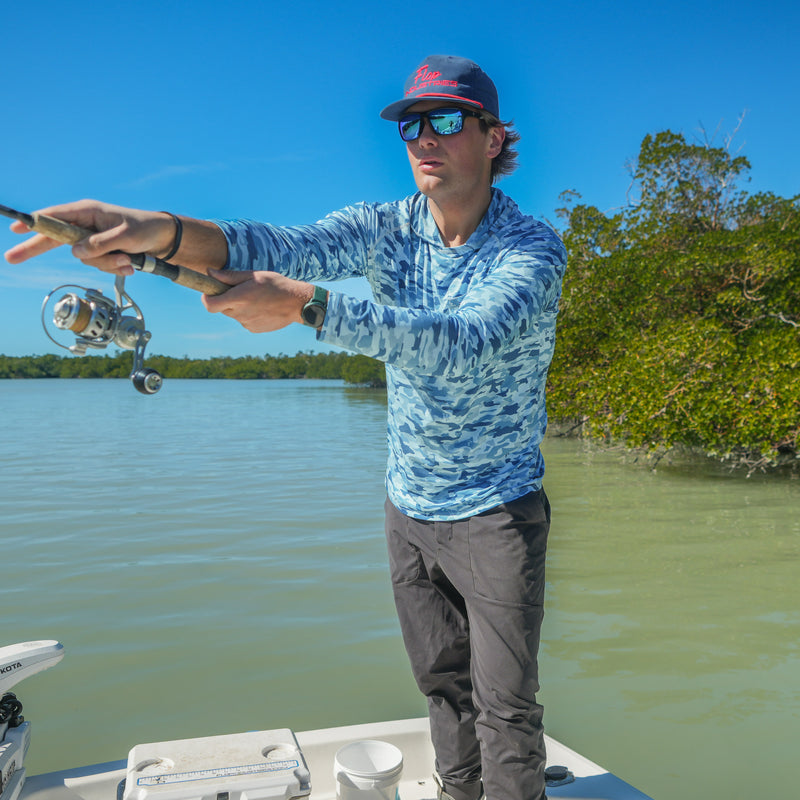 Finished with reinforced stitching, durable high-quality materials, and a clean front pocket accented by a small woven Flop tag, this hoodie is built to hold up to demanding days on the water. The Tidal Series patterns add a distinctive look inspired by life offshore, without compromising the performance anglers expect.